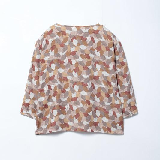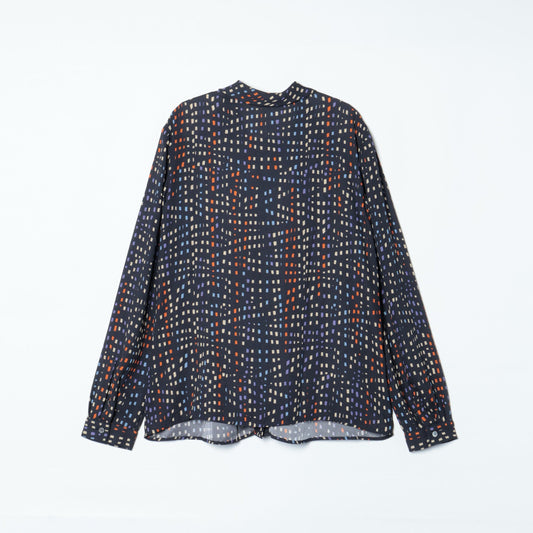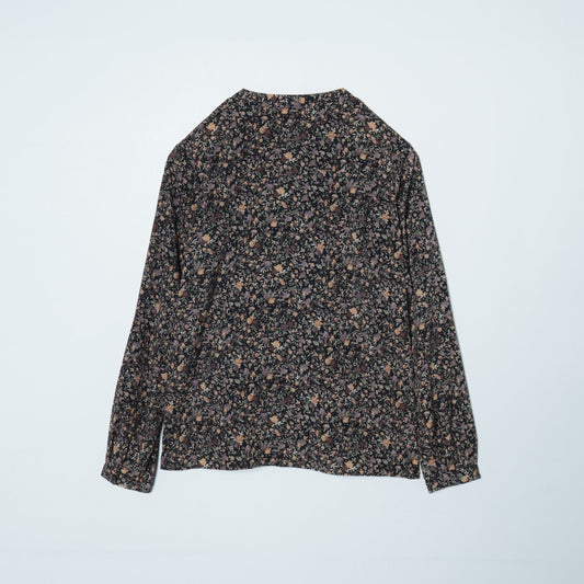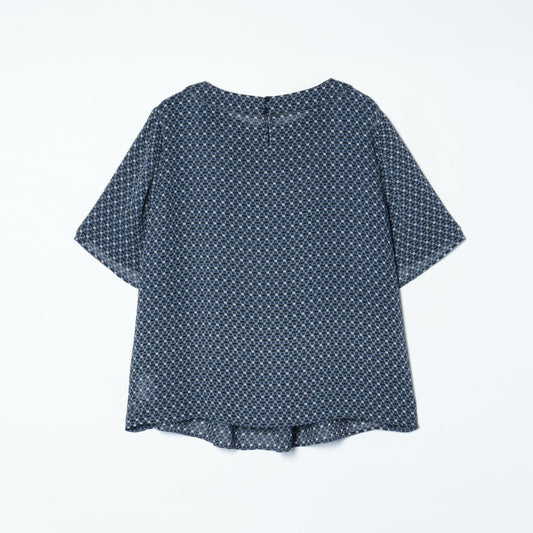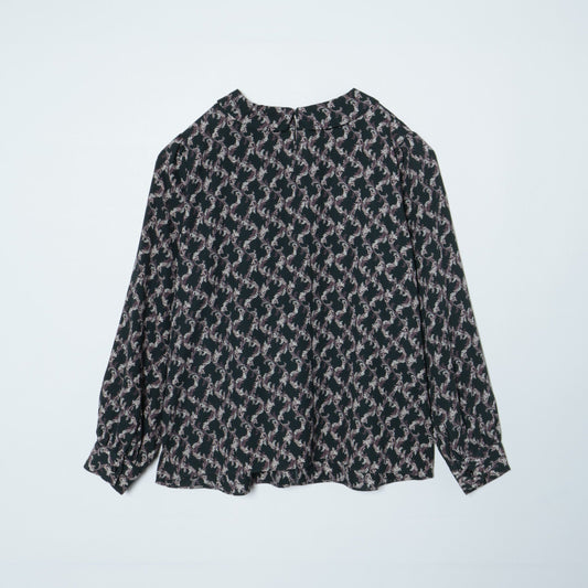 【L】バイヤスミニバードプリント 半袖ノーカラーブラウス