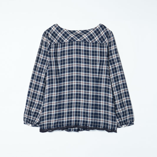 【L】カラードラインレトロチェック レギュラーカラーシャツ