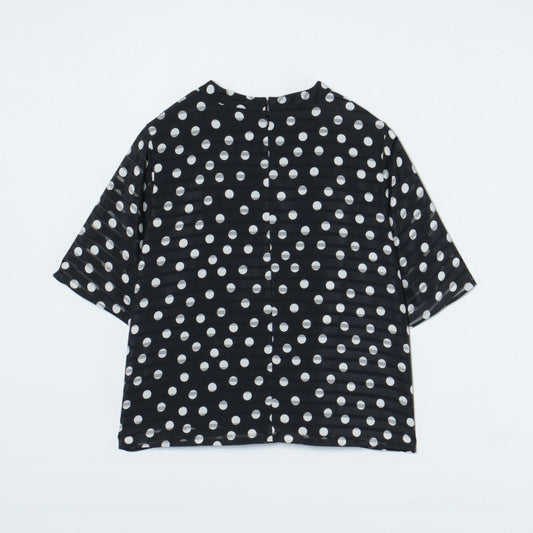 【店舗限定】シフォンドットフロッキー スタンドフリルブラウス(スーツインナー対応)