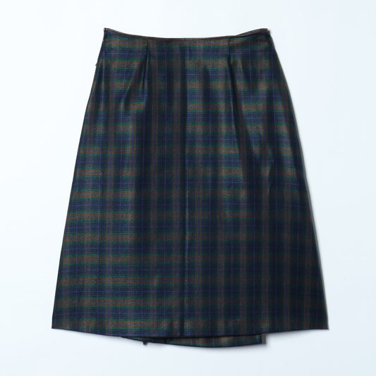 ライトシアーチェック アシンメトリーダブルプリーツスカート