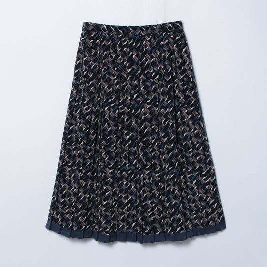 ジオメトリックモチーフプリント プリーツミモレスカート