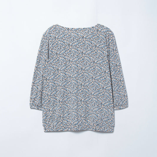 【L】モザイクプリント強撚スムース クルーネックプルオーバー(スーツインナー対応)