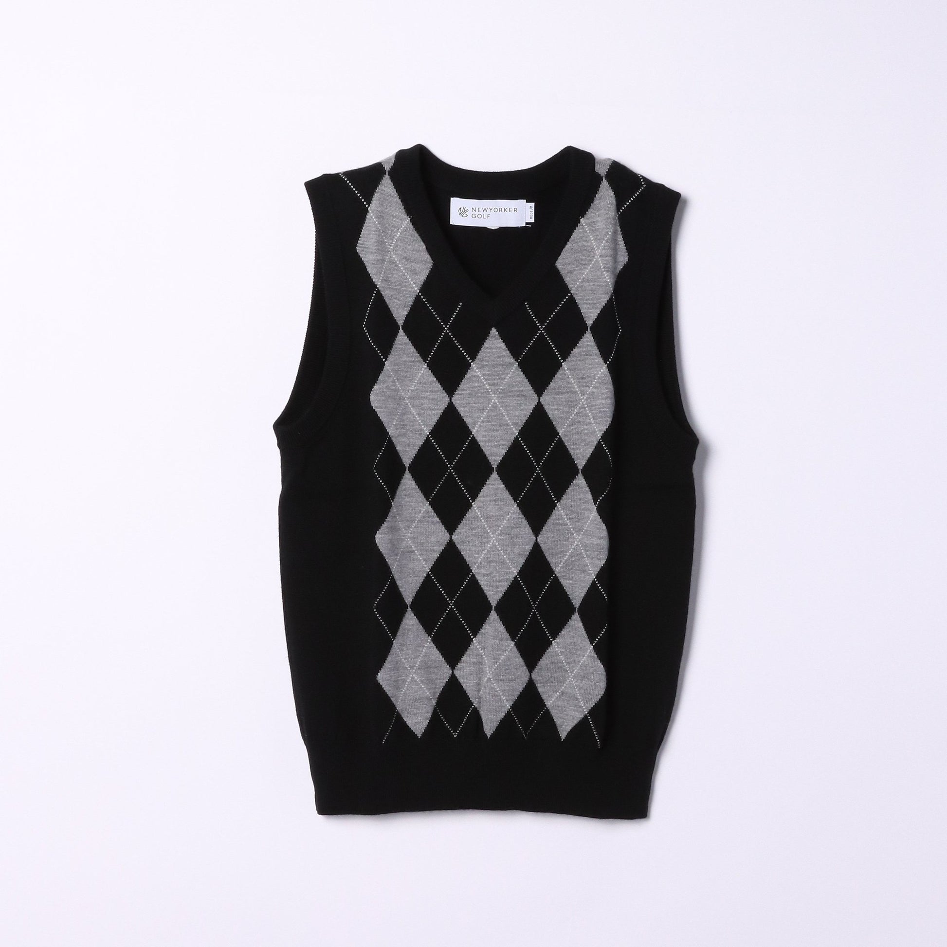 品の良さを感じさせる定番のアーガイル柄。インナーアイテムと着回ししやすいブラック×グレー、アイボリー×ネイビーのベーシックラーでご用意しました。
