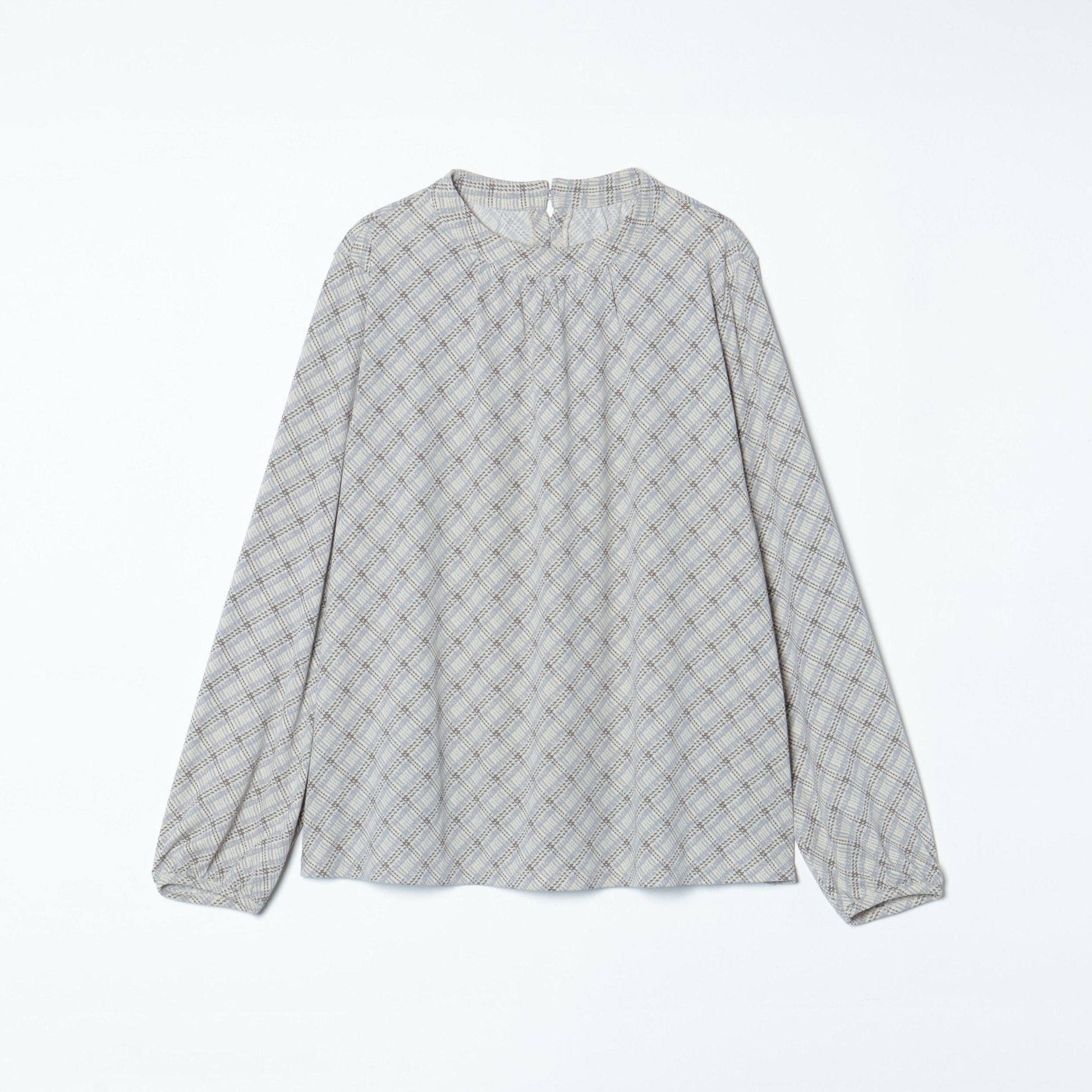 バイヤスチェックプリント スタンドネックカットソー(スーツインナー対応)