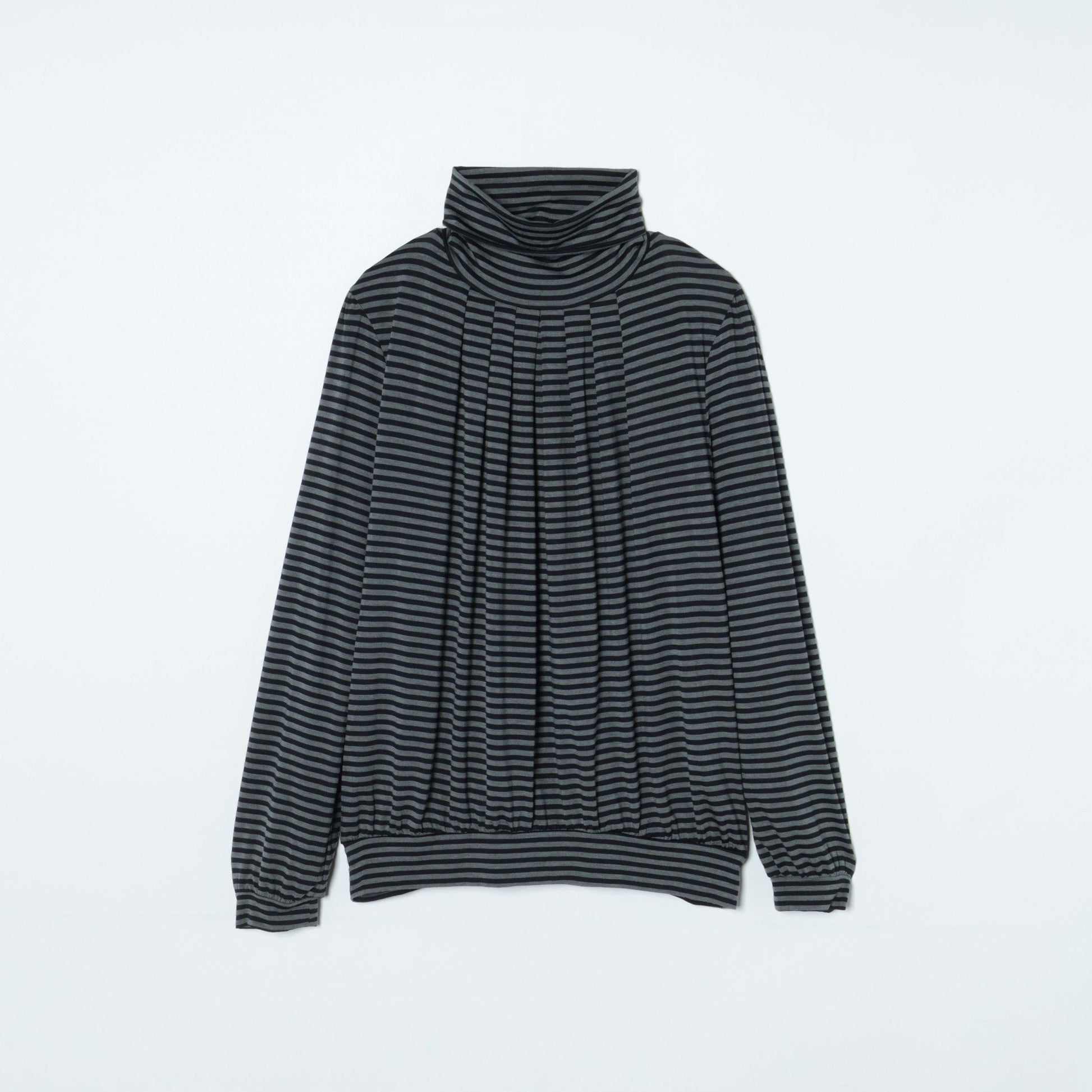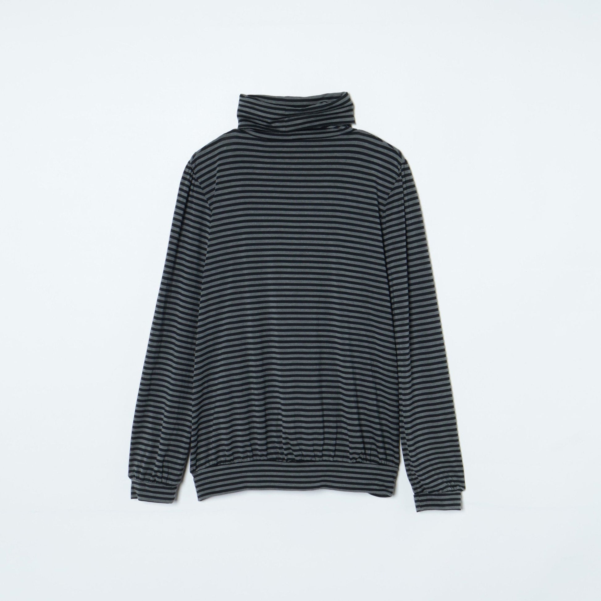 ラグウォーム ギャザータートルネックカットソー(ボーダー)/スーツインナー対応