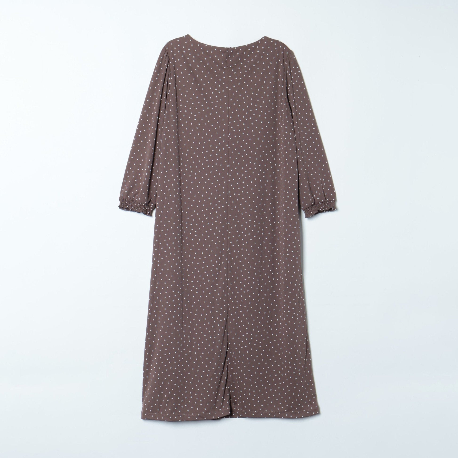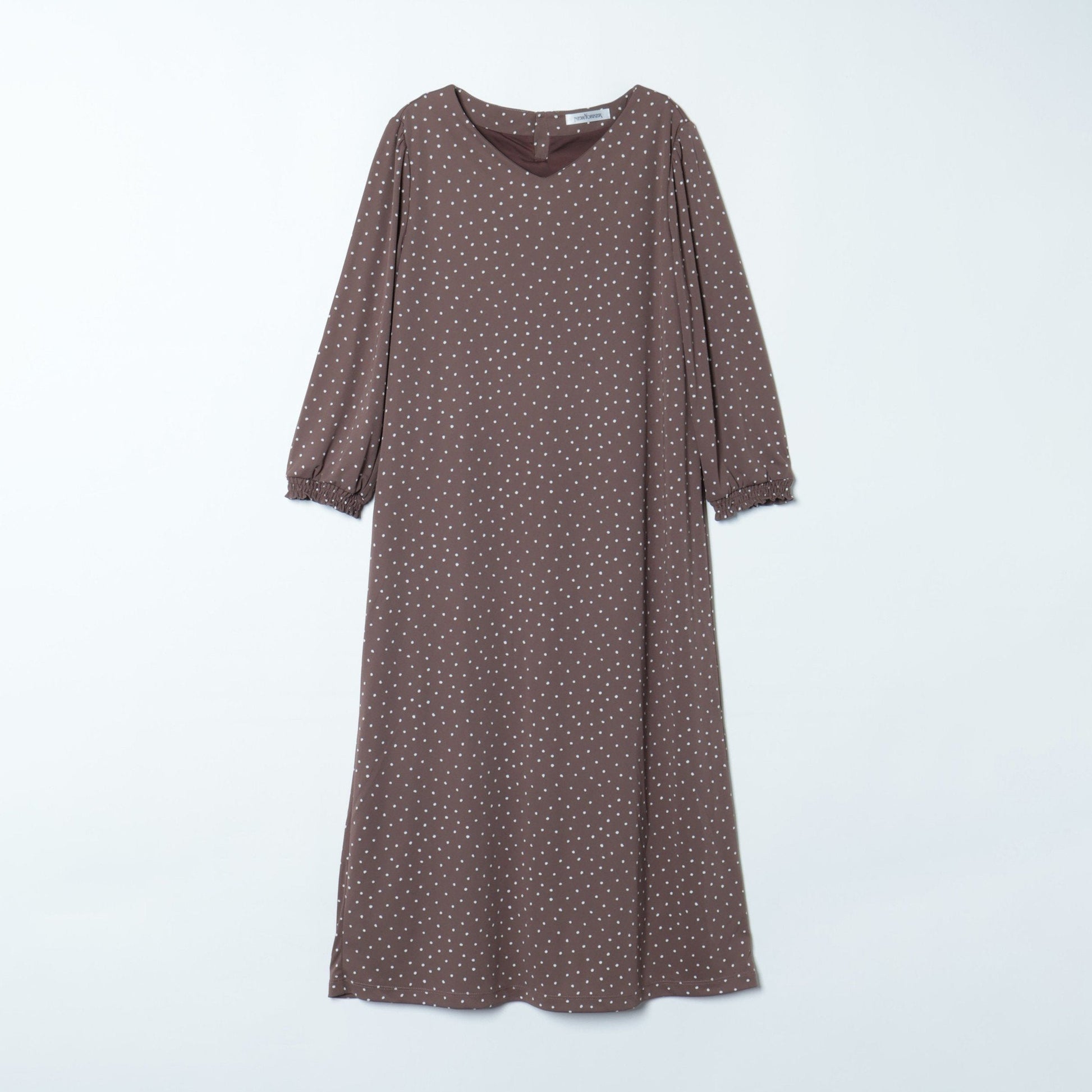 強撚スムース スノードットプリント 7分袖Vネックワンピース