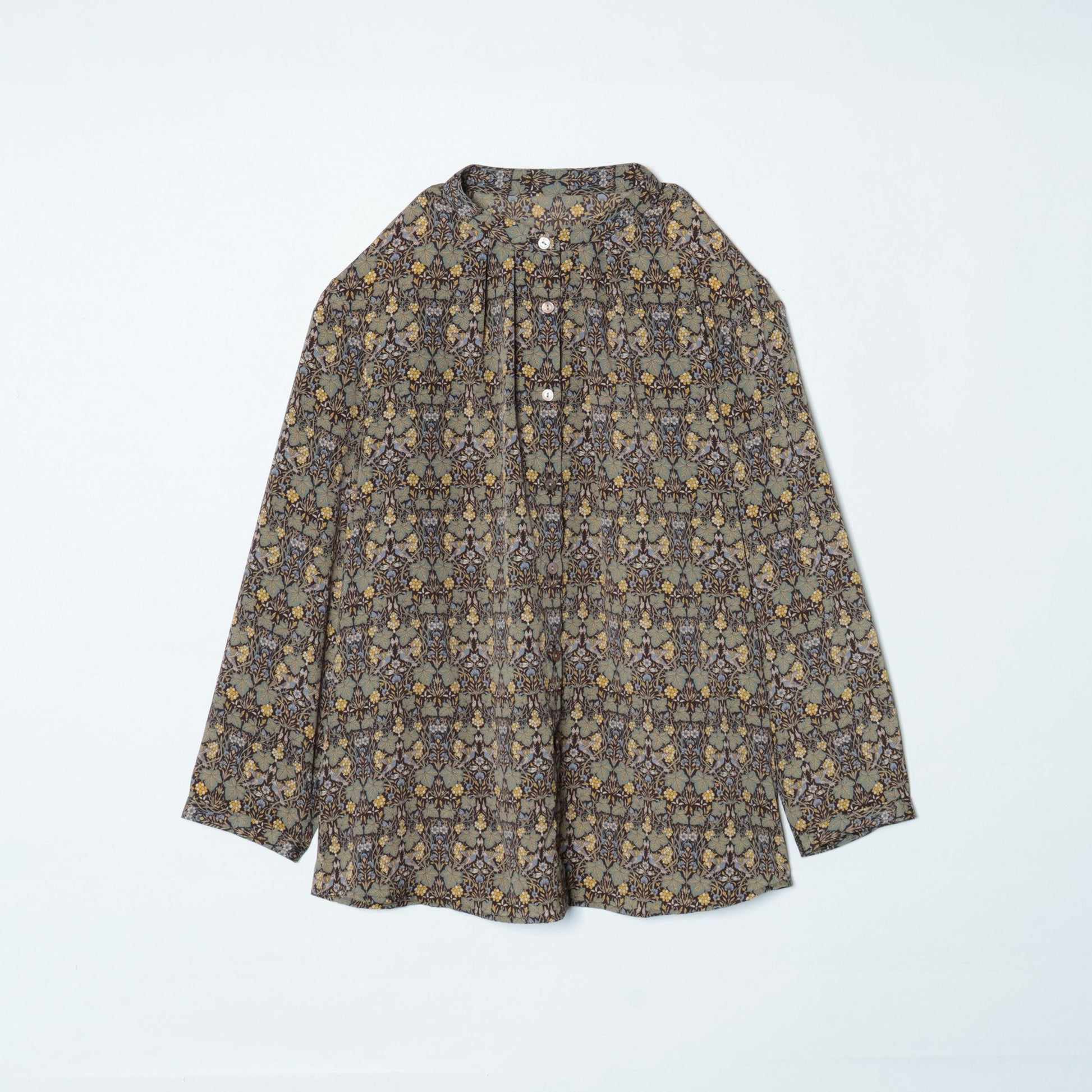 リバティ ヴァイン・シーフ スタンドカラー7分袖ブラウス