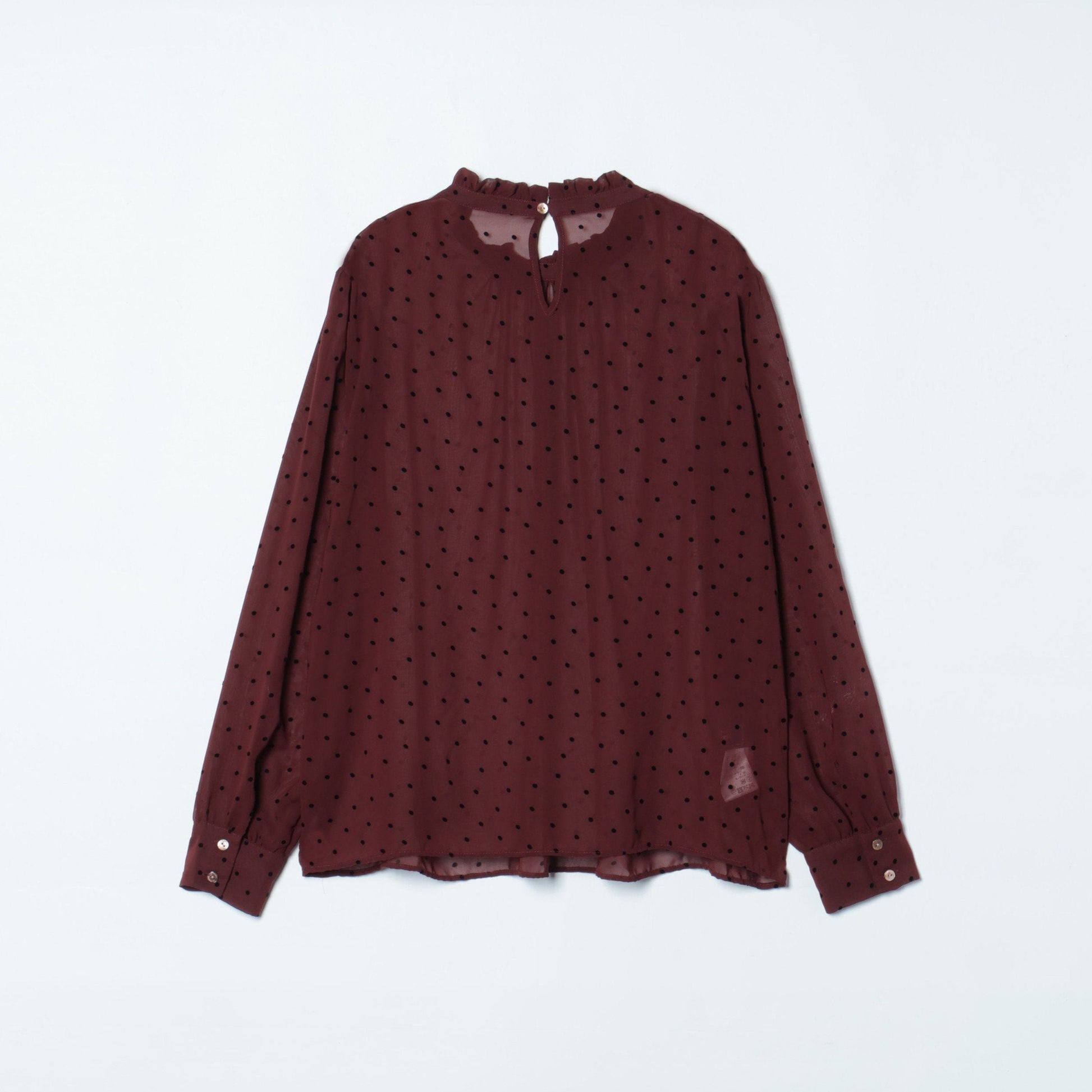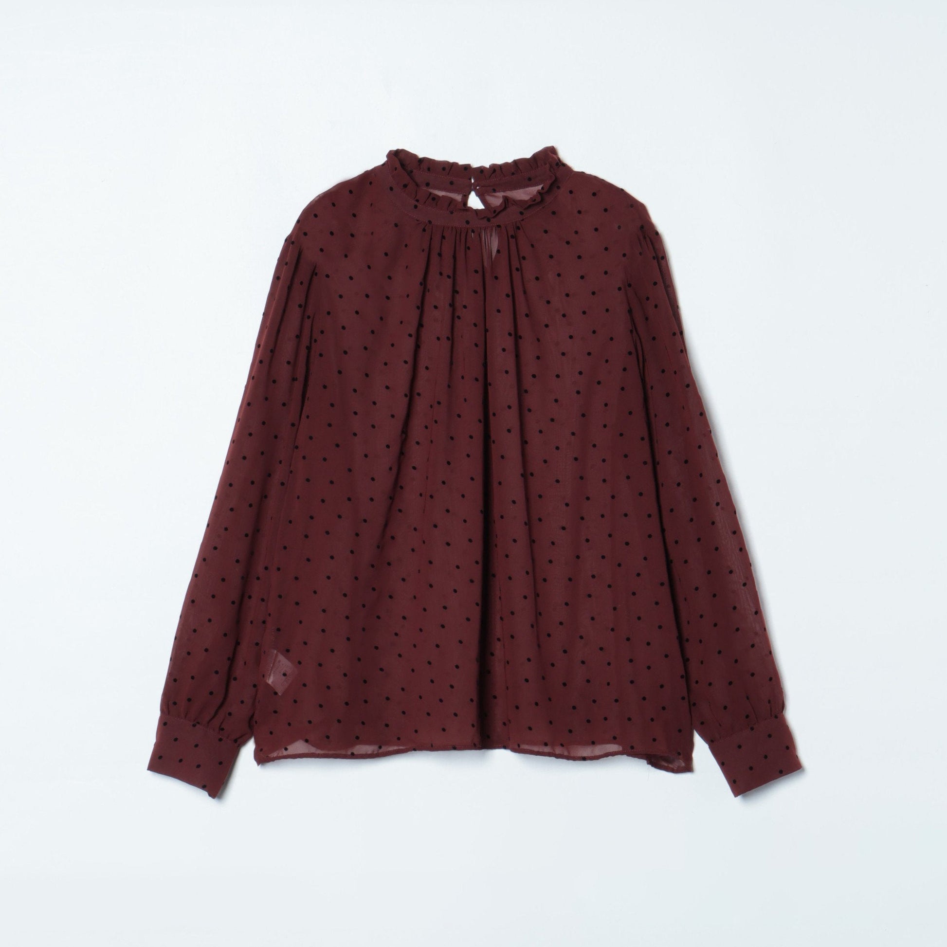 【店舗限定】シフォンドットフロッキー スタンドフリルブラウス(スーツインナー対応)