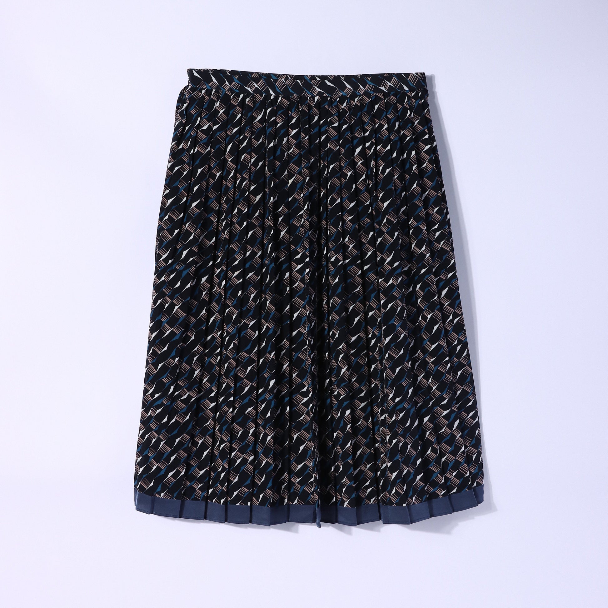【L】ジオメトリックモチーフプリント プリーツミモレスカート