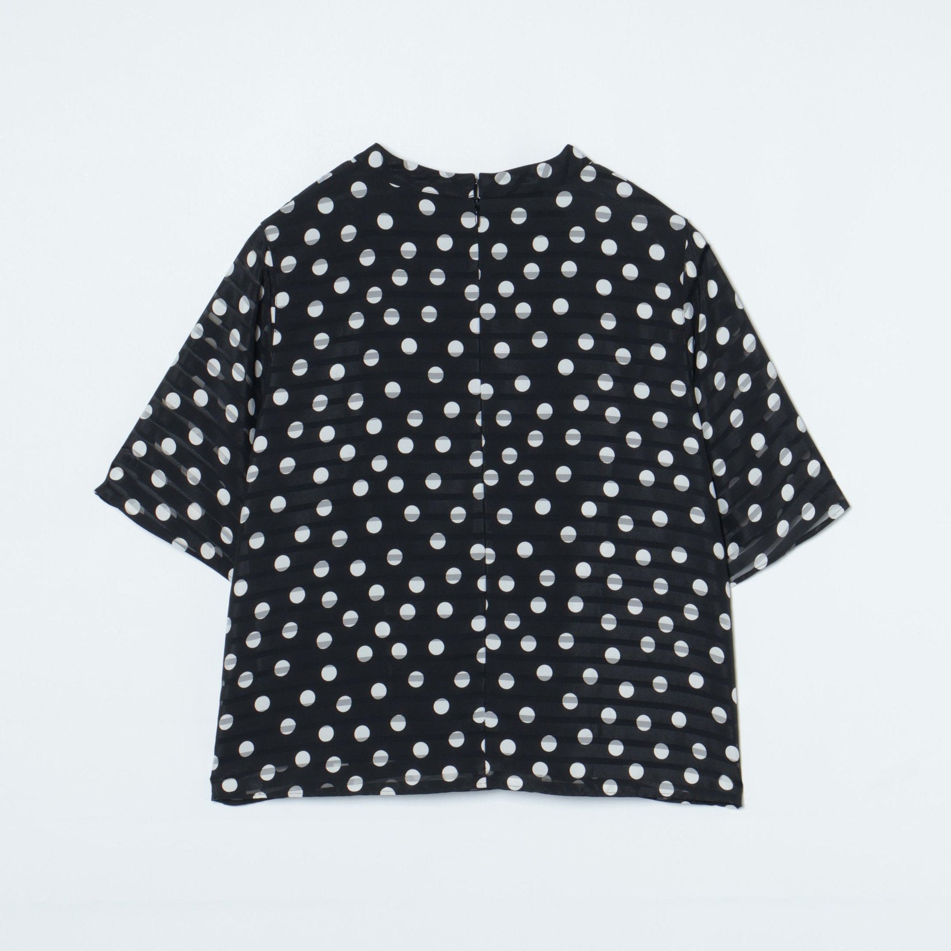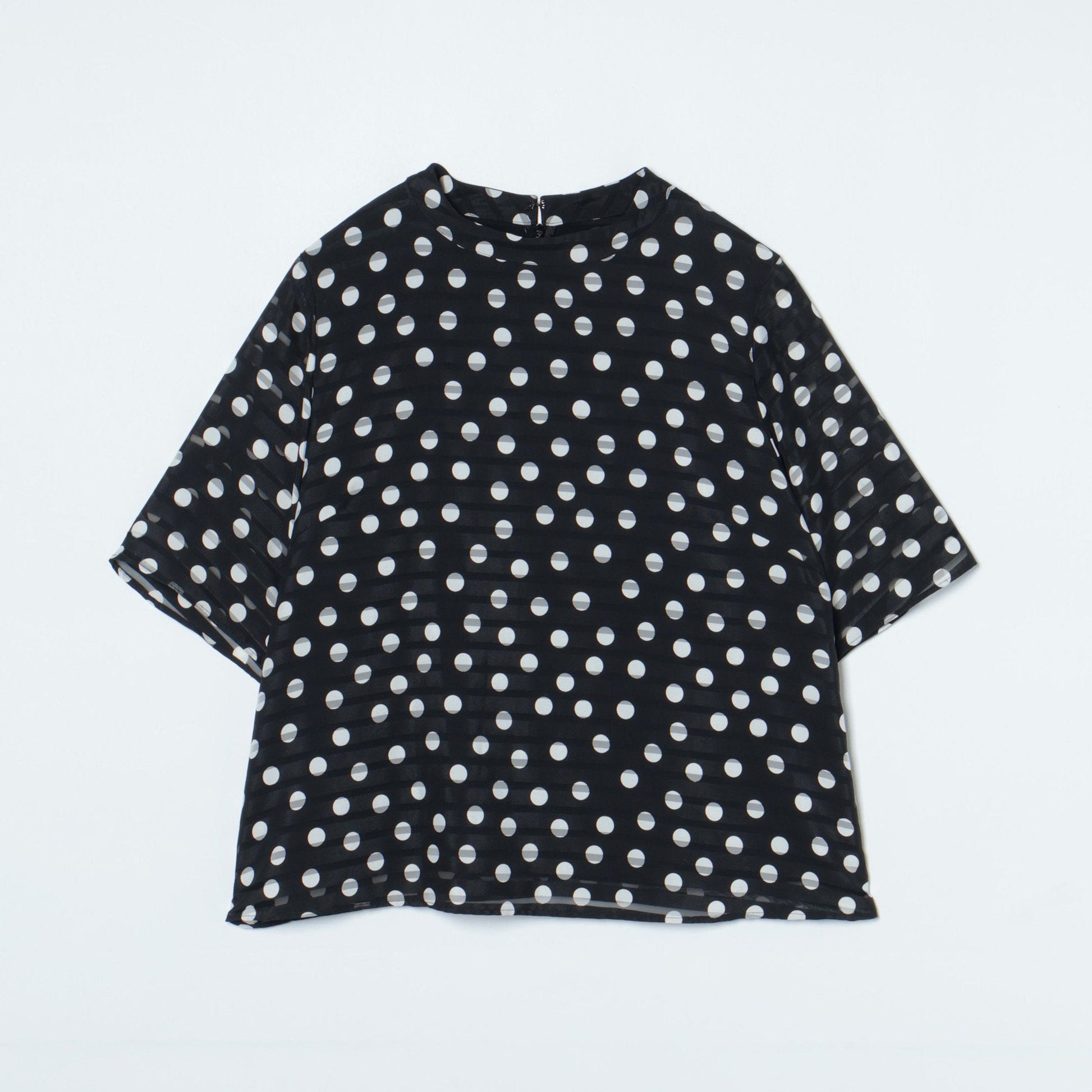 【L】シアボーダードットプリントブラウス
