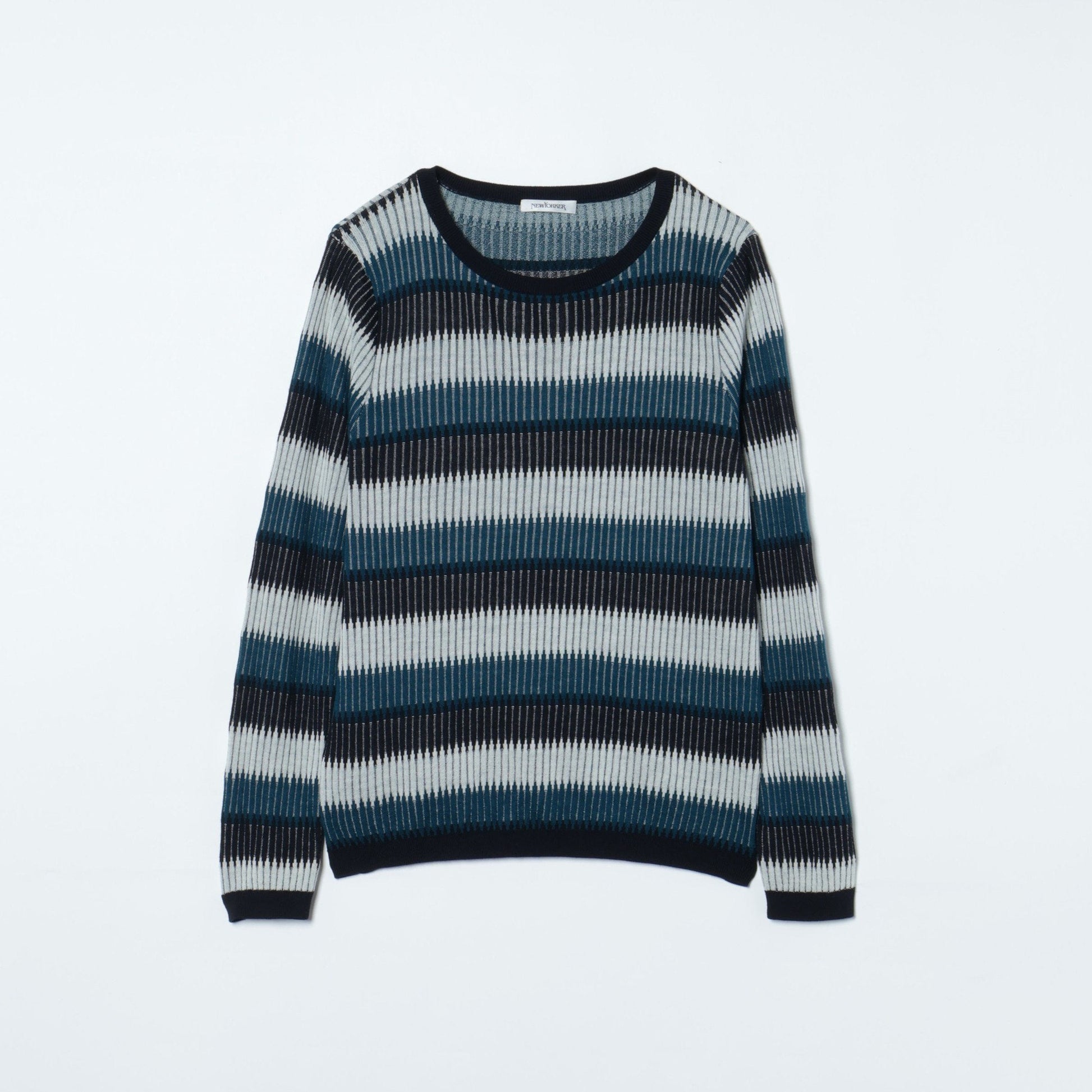 【L】ウォッシャブルウール ボートネックボーダーニット